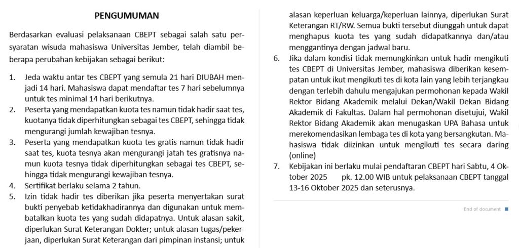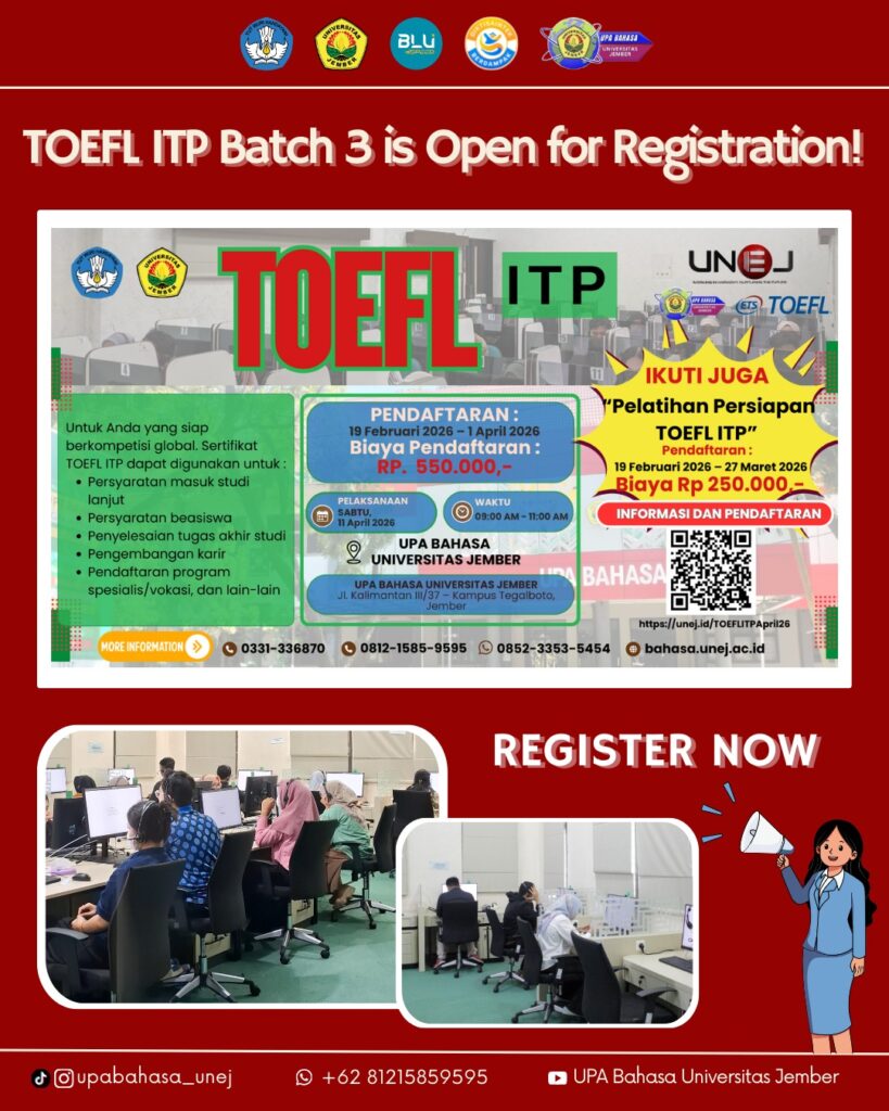 Lomba yang diselenggarakan oleh UPA Bahasa Universitas Jember ini berakhir dengan Babak Final yang dilaksanakan hari Kamis, 28 November 2024 dengan menghadirkan 10 kontestan terbaik. Di hadapan 3 Juri, Dr. David Imamyartha, M.Pd. (FKIP), Dewianti Khazanah, S.S., M.Hum. (FIB), dan Ghanesya Hari Murti, S.S., M.Hum. (FIB), para finalis menyampaikan pidato dalam Bahasa Inggris dan bertanya-jawab dengan para juri. Penampilan para finalis itu menjadi penentu untuk menjadi juara.